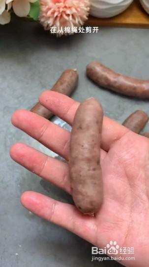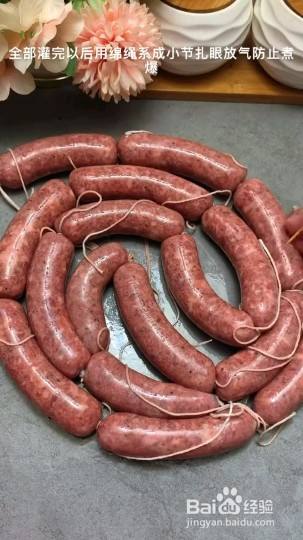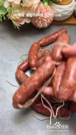 把肉馅放到肠衣里,全部灌完以后扎成小节,如果室内温度低于20度凉四个小时