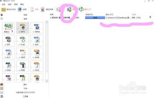 点击上方开始按钮 稍等几秒就转换好了 注意看后面的文件夹位置 最好把文件夹保存在桌面上 接下来添加进itunes时就好找一点