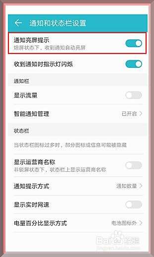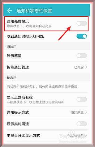 如图,此时我们在通知和状态栏设置页面,打开“通知亮屏提示”的按钮。