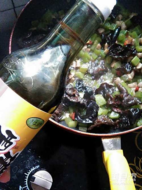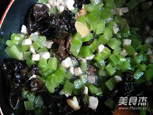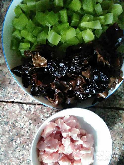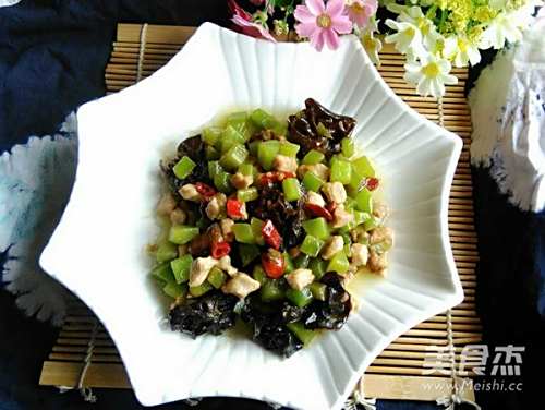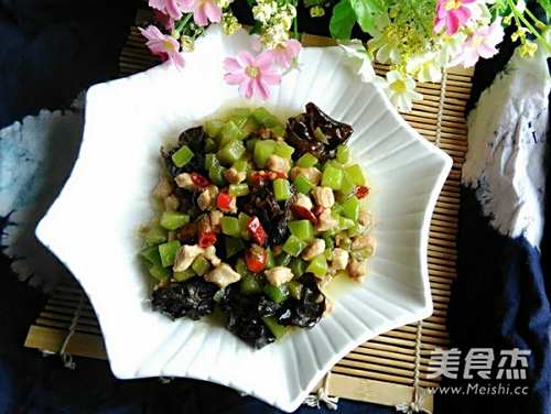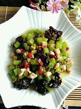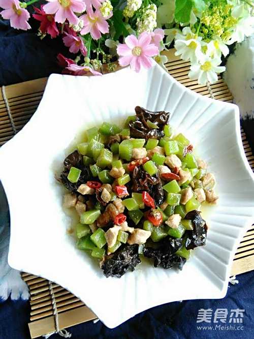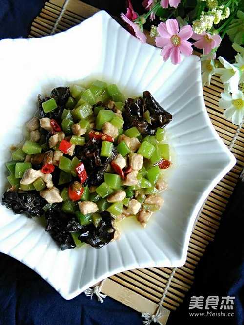 莴笋切丁炒肉丁耳孑放点醋辣椒是一道可口的开胃菜,也是家常菜。