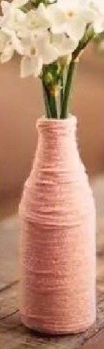 找不用的瓶子,先涂满乳胶,然后将毛线由下至上一圈一圈缠绕,等待干透,就得到了漂亮的花瓶。