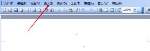 打开文档,在菜单栏,选择“插入”。