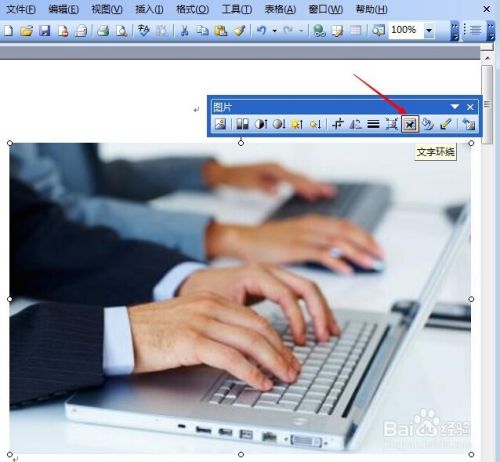 鼠标点中图片,在弹出的图片编辑栏中,编辑图片显示方式,如“浮于文字上方”、“四周型环绕”都可以,根据具体需要来选择即可。