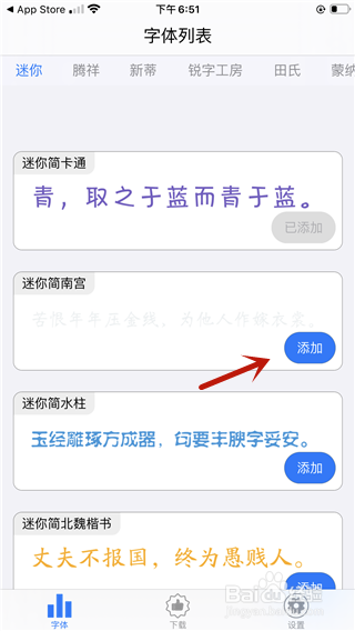 10、在手机设置中的字体中,既可以按到安装的字体,就可以在里面使用这个字体。