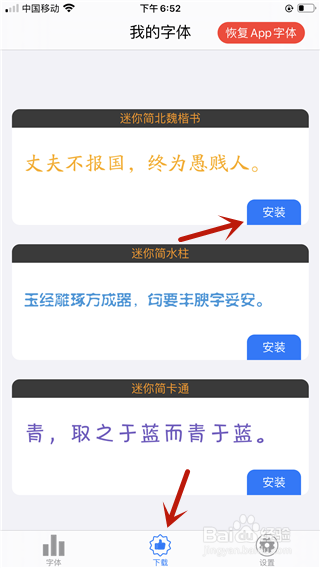 然后在下载选项中,看到自己添加的字体,点击【安装】按钮。