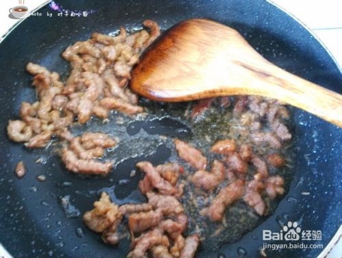锅里放入适量的花生油,烧到八成热,爆炒牛肉,放入少许孜然,出锅待用