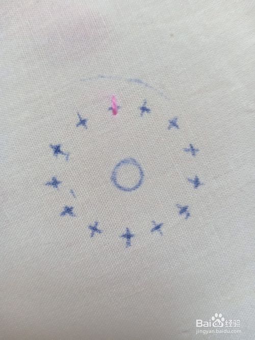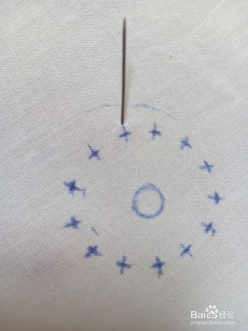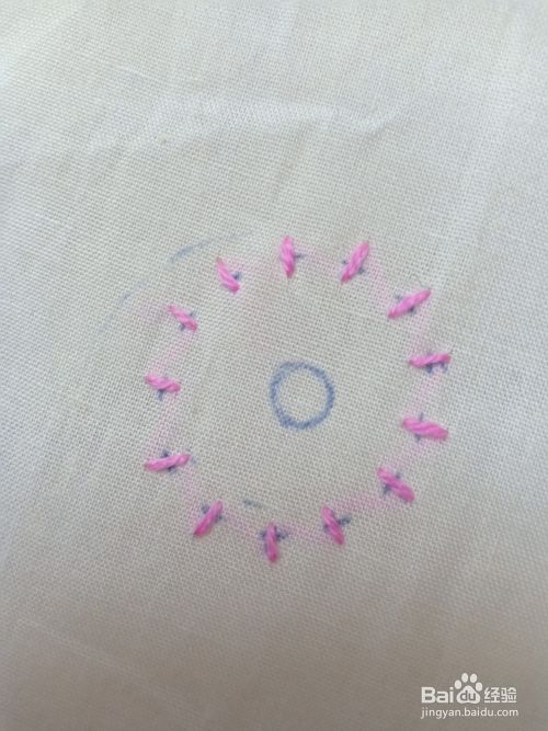 每一个图案都是一样的绣法,为了节省时间,我们在绣的时候,可以直接挑布到,下一辅助线上出针,就可以达到节省时间的效果了。
