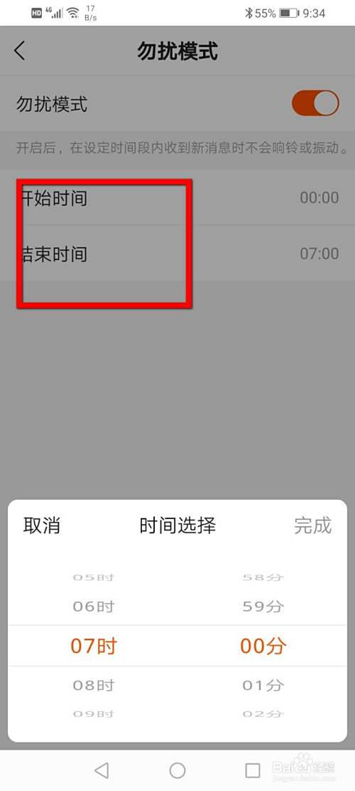 最后将勿扰模式的时间将开始时间和结束时间设置成相同。