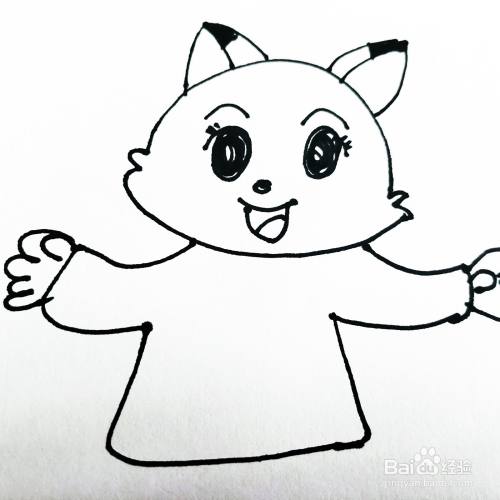 第四步,我们来画卡通猫咪的身体部分和双手胳膊。