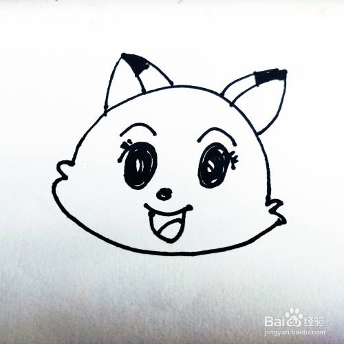 第三步,我们来画卡通猫咪的两只大眼睛和嘴巴部分。