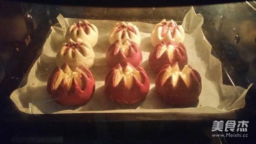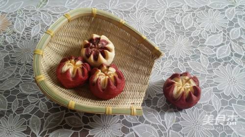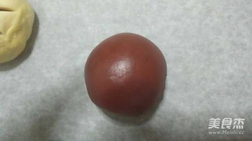 1准备好制作荷花酥的材料,分别制作红曲水油皮和白色水油皮。首先把要制作的红曲水油皮的原料倒入面包机,开启和面程序,揉出膜,就是通常说的扩展阶段,这样的好处是不容易破酥。面包机揉好滚圆,拿出静置30分钟。用同样的方法制作白色水油皮。(没有面包机的可用手工揉面法)