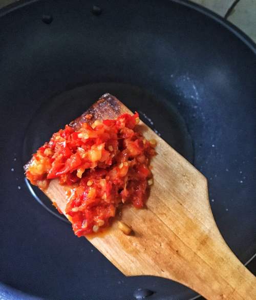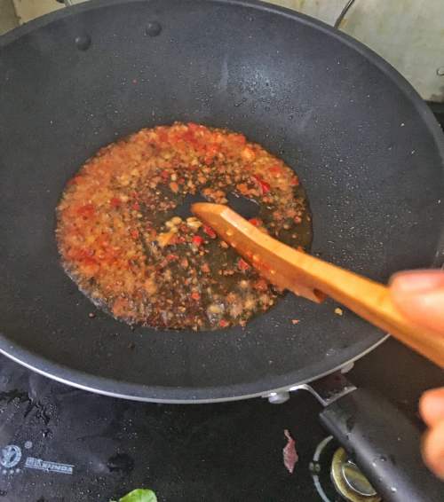 4将剁辣椒爆出香味。