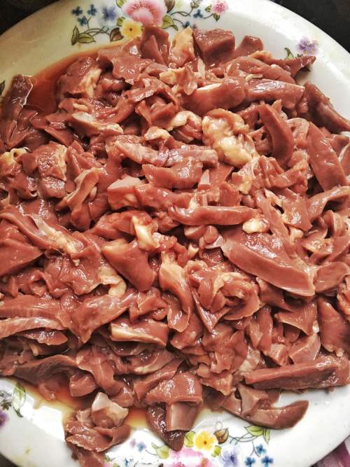 1猪心切好之后用料酒、盐、生抽、少量白糖腌制半小时。