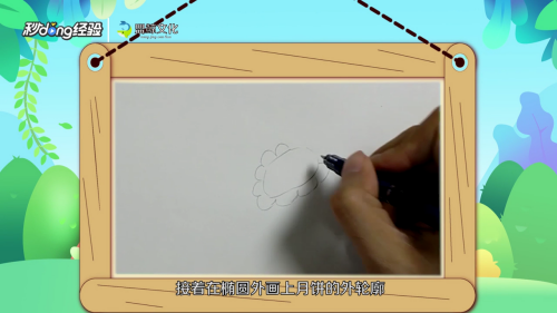 用铅笔画一个椭圆,在椭圆外画上月饼的外轮廓。