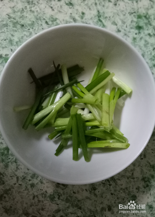 小葱洗干净,葱头切成五厘米长的段,葱尾切成葱花。
