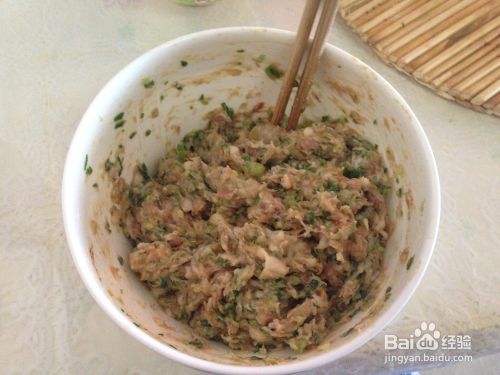 把馅搅拌上劲(在上一步,不放鸡蛋的话,放少许水也是可以的,个人觉得鸡蛋比水容易上劲)