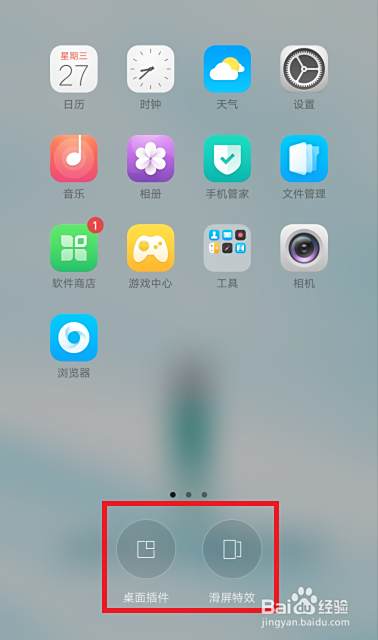 2、手机屏幕出现“桌面插件”,点击进入“桌面插件”。