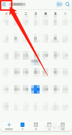打开手机日历进入界面,选择左上角三横图标点击进入。