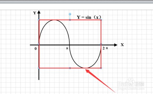 绘制sin函数时,要选中上方菜单栏中的“弧形”工具,从坐标的“0”点处开始绘制正弦曲线。