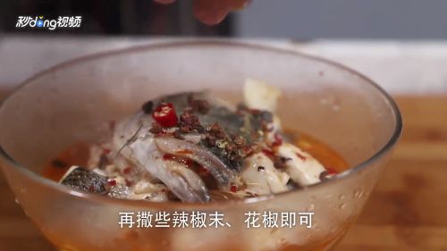 3煮开后放少许的盐,豆芽放到盘子里,把煮好的鱼块放在豆芽上面,把刚才的汤倒进去,再撒些辣椒末、花椒即可。