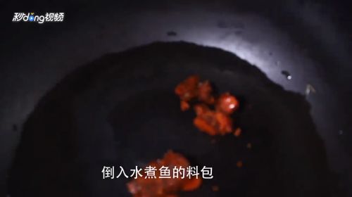 2鲈鱼处理干净,黄豆芽洗净焯水,捞出备用,锅内加水,倒入水煮鱼的料包,将切好的鱼放进去煮熟。