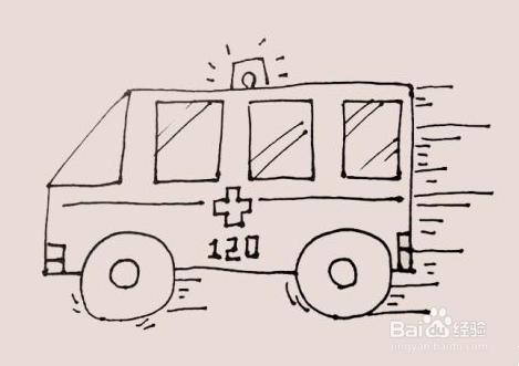 车的中间画上一个十字,下面写上“120”,再画一条横线区分车的上下部分。