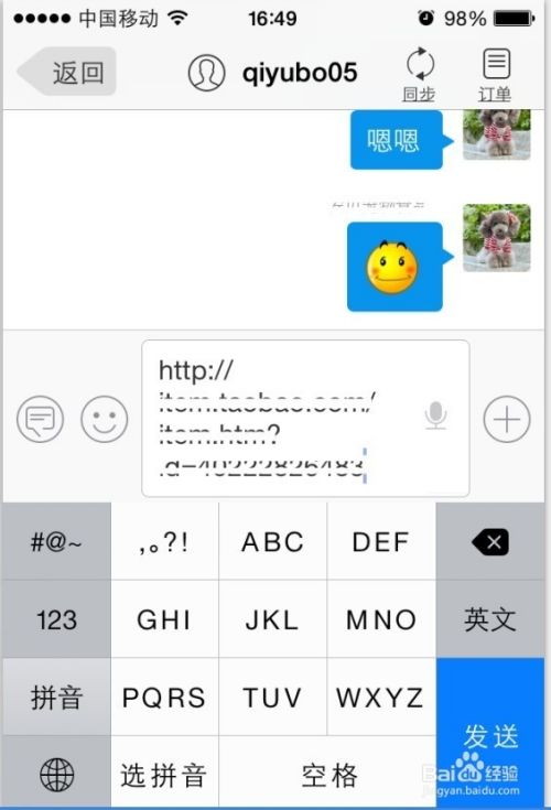 然后返回到聊天页面,打开要推荐宝贝的客户,如图所示