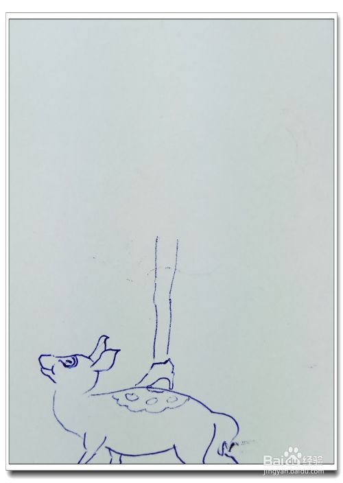 画出小鹿背上的装饰品,再画出表演人的一个脚。