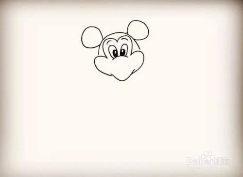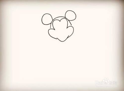 首先画一个半圆的弧线,来代替米老鼠的头部。头部下面画出两个相对称的"3"是它的脸颊。