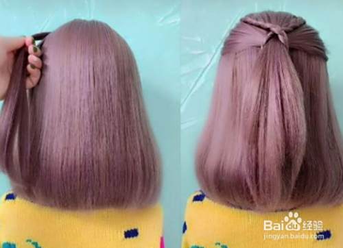 扭转半头:从左右两边头顶拨一股头发,扭转用发夹固定还将两股交汇扎起来。方法简单又快捷,加上半头是大势没有全盘起来那么显成熟,还是很活泼的一款发型。