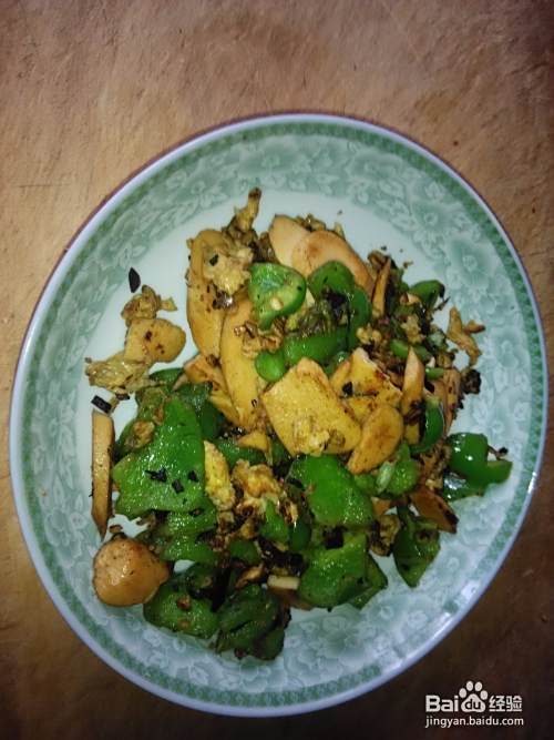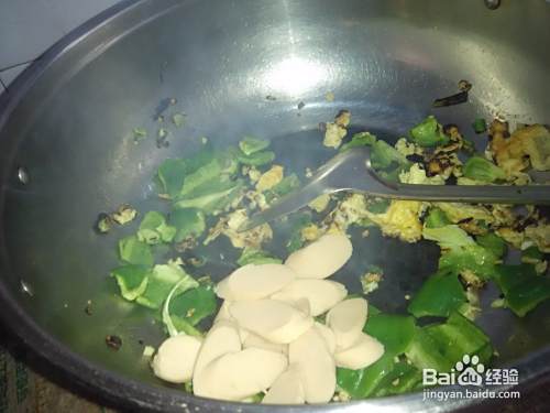 这道菜里,我用了鱼肠炒鸡蛋青椒。当然,还可以用你喜欢的其它的香肠来做!