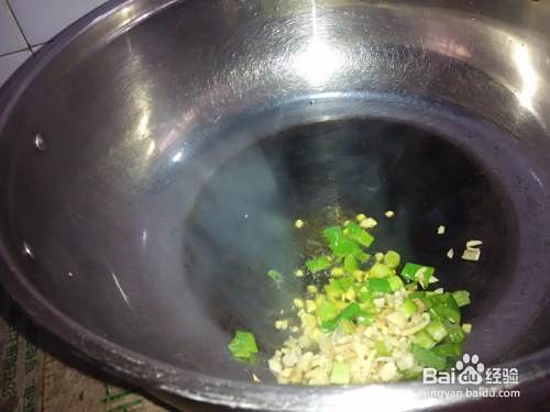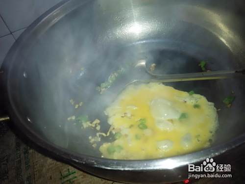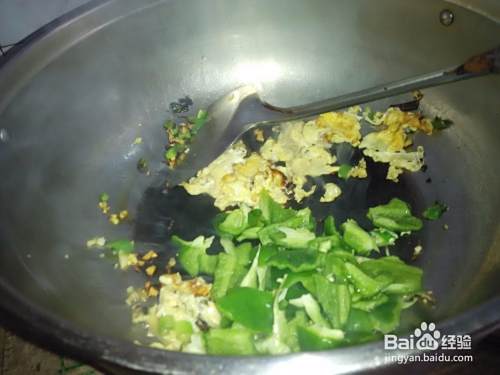 热锅凉油。放入葱花,姜沫和切碎的大蒜。爆香!再放入鸡蛋。炒成形后,再放入青椒,炒一会儿。最后,放入鱼肠。翻炒几下。关火!放入盐,酱油,十三香。拌匀!出锅!盛盘!吃饭了!