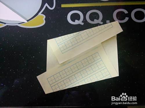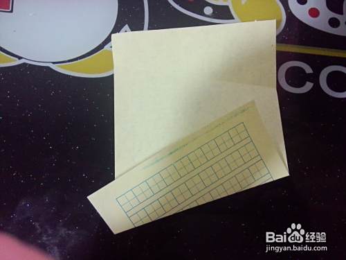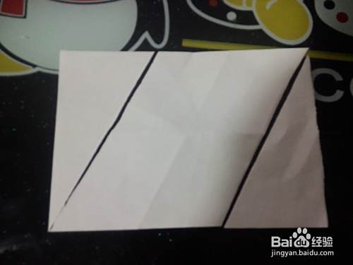将原长方形的另一条宽斜着向下折叠,并且使这两条宽的一部分重合,这样这两条宽就成一条直线。