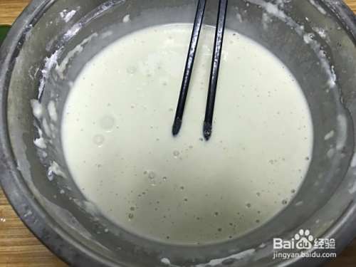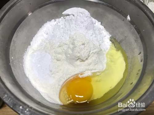 再加入一个鸡蛋,最后加入适量的水,搅拌成均匀没有干粉的面糊就可以了。
