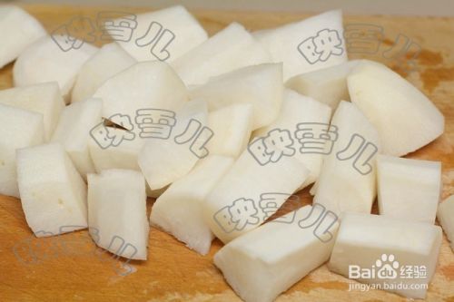 萝卜也切成小块。如果煮时间长可切大块一点。