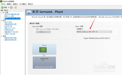 3.点击配置PhysX,选择自己电脑的独立显卡,不要选择核心显卡。