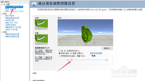 1.从桌面点击英伟达控制面板,找到通过预览调整图像设置,选择性能。