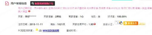 4、PC旺旺活跃度(如果为0,注意下是不是小号,这个不为必要条件)。