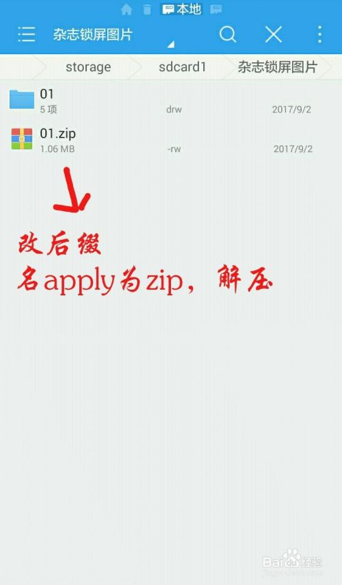 把下载来的apply文件复制到sd卡或其他路径中,修改后缀名为zip格式,解压。