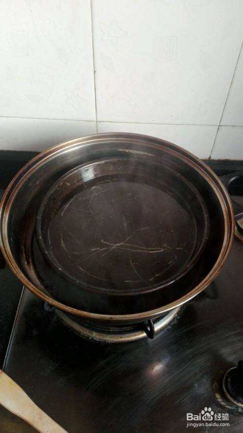 蒸锅里放上架子和适量开水,蒸米浆的盘子刷少量油防粘,烧开水备用。我这8寸披萨盘用久了,实在有点惨不忍睹