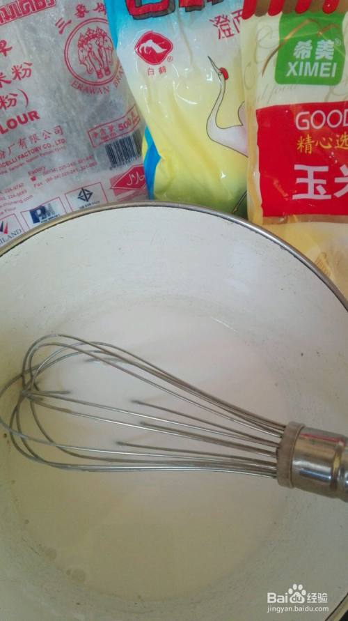 把粘米粉,澄粉,淀粉,油,盐,水混合均匀,待用。