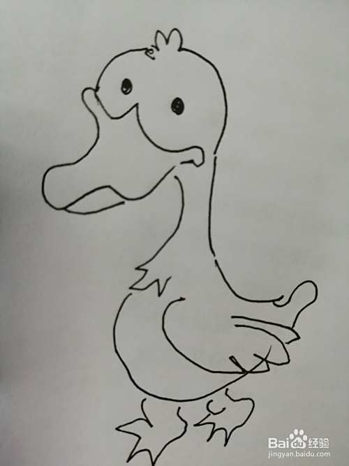 第七步,最后把可爱的小鸭子的两只脚画完整。可爱的小鸭子就画好了。