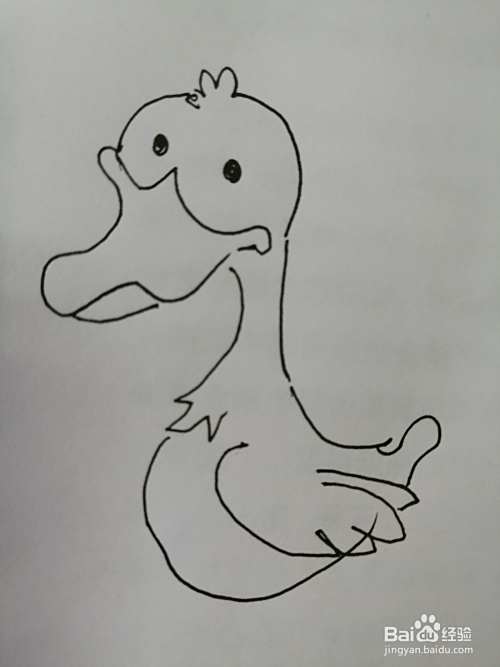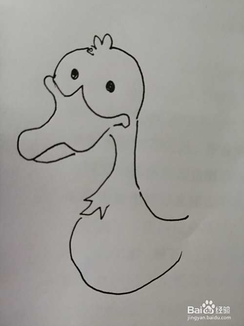 第四步,接着继续画出可爱的小鸭子的身体,注意身体轮廓的画法。
