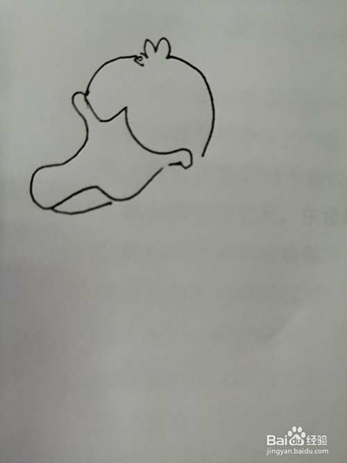 第二步,接着继续画出可爱的小鸭子的头,注意头部轮廓的画法。