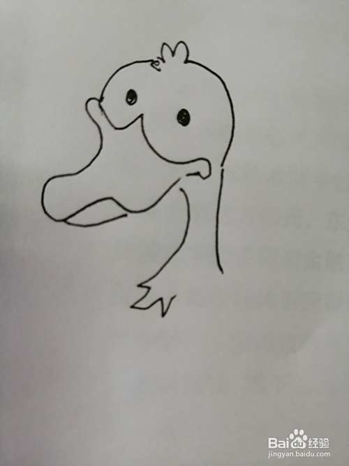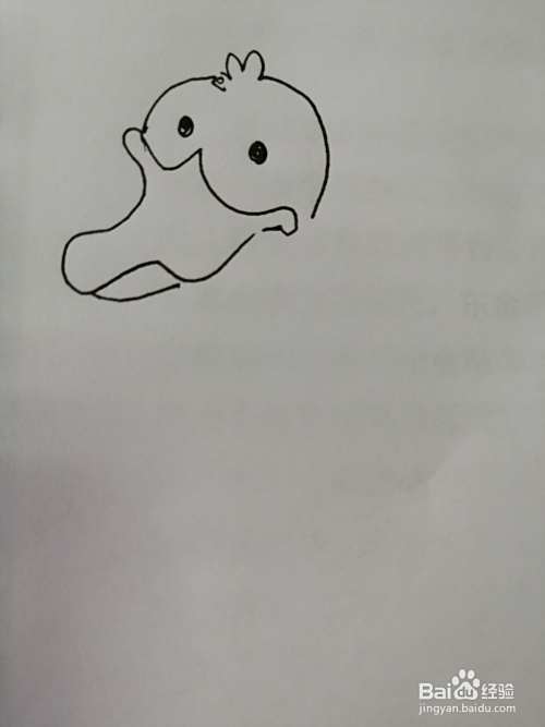 第三步,接着把可爱的小鸭子的两只眼睛画出来,注意眼睛的位置。