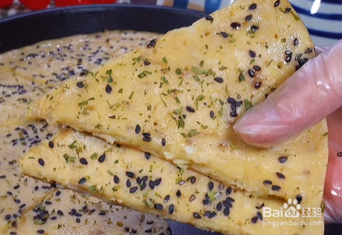 然后把它切块,拿起来,就可以开吃了,香甜软糯,用来当早餐正合适。
