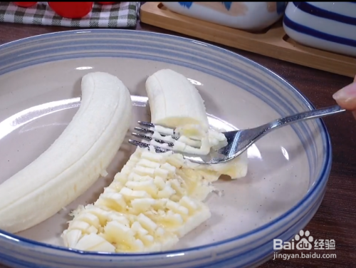 直到把它们一起搅拌成这种香蕉糊,就可以了,也可以放一盲此点调味料。