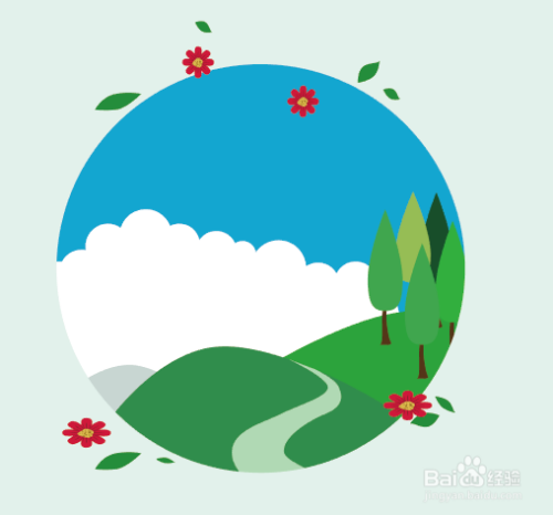 使用钢笔工具绘制几棵小树,如图所示排列即可。