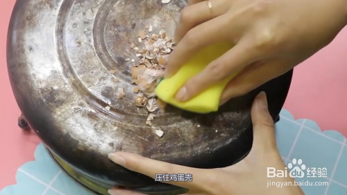 用百洁布压着鸡蛋壳,使碳酸钙成分摩擦掉锅烧焦的痕迹即可,具体的操作步骤如下: