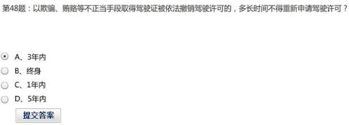 口诀:“吊二撤三醉五,逃终生”,意思是,吊销驾驶证的,二年内不能重新申领机动车驾驶证,撤销的三年,醉酒驾车五年,造成交通事故后逃跑的终生不能申请。